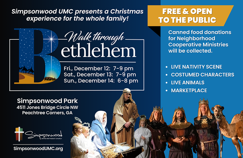 Nestled in the neighborhoods of Peachtree Corners, GA, Simpsonwood United Methodist Church is passionate about our mission: to know Christ and make Him known to others. As a warm and welcoming community of Christ’s disciples, our doors are open to all, no matter where you are in your personal faith journey.