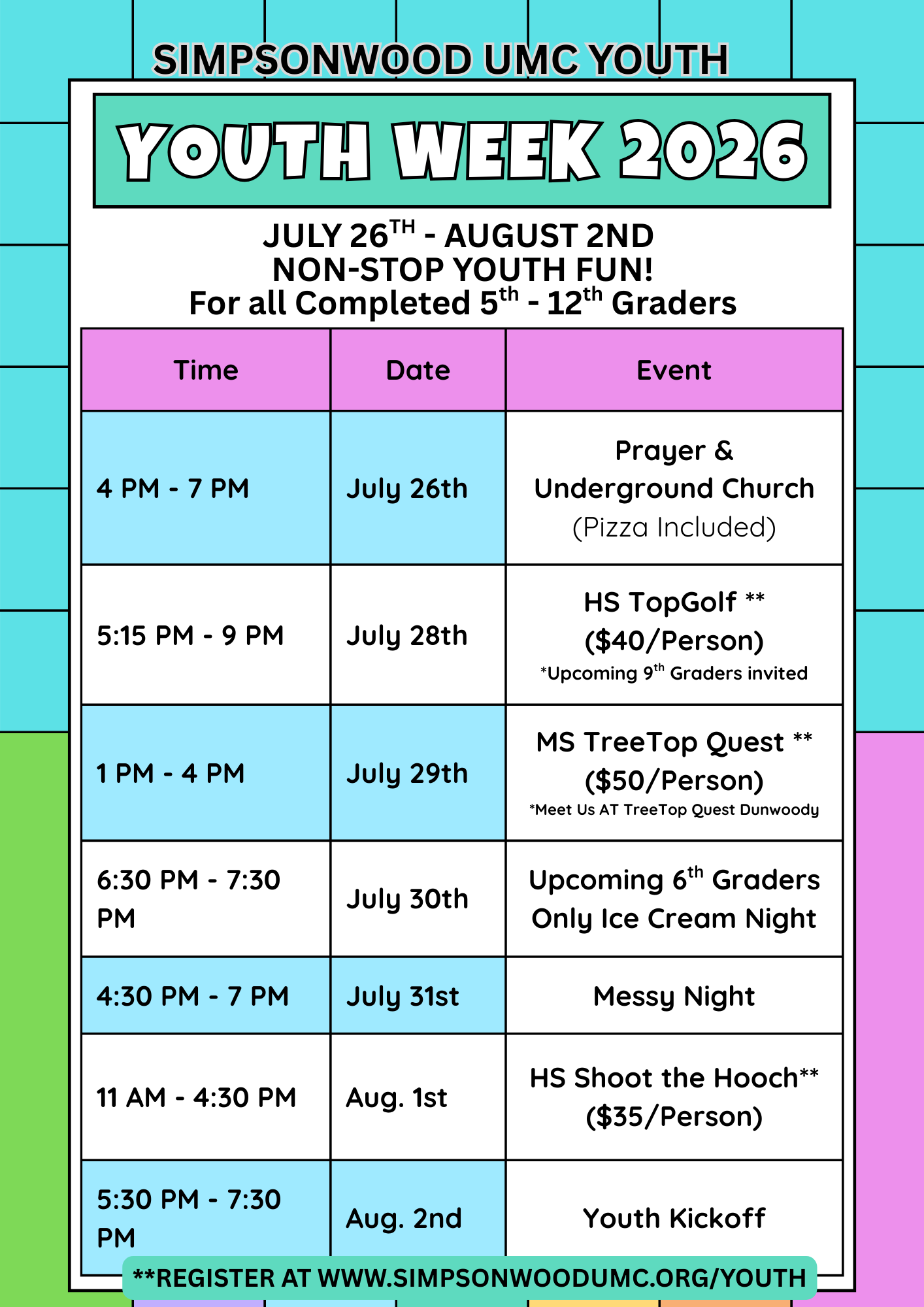 SUMMER 2026 WITH SIMPSONWOOD YOUTH